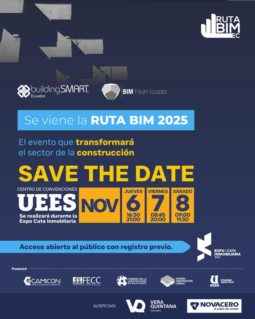 Centro de convenciones UEES José Joaquín de Olmedo en el Km. 2.5 Vía La Puntilla Samborondón., GuayaquilEl evento que transformará el sector de la construcción Te invitamos a ser parte de Ruta BIM 2025, el encuentro más importante de innovación, tecnología y sostenibilidad en la construcción, que se llevará a cabo en el marco de la EXPO - CATA Inmobiliaria. Este evento reunirá a destacados expertos nacionales e internacionales durante tres […]
